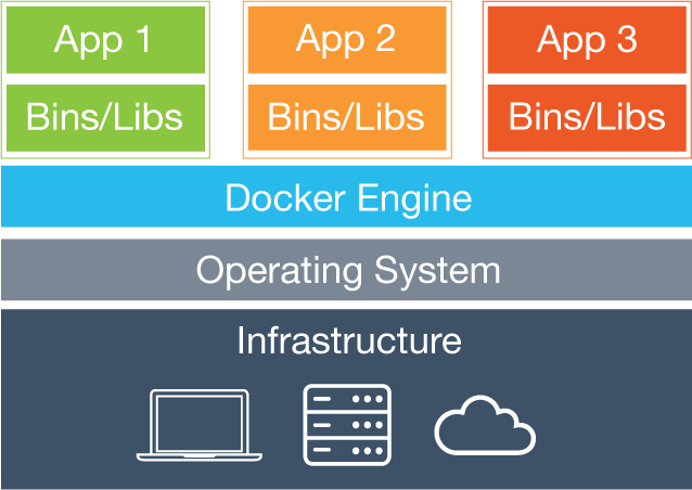 - Contenedores: contienen todo lo necesario para que una aplicación pueda funcionar.