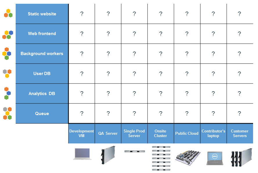 Dev: Basado en Pre-prod, puede añadir herramientas útiles en desarrollo: xdebug, vim, sass compiler, etc.